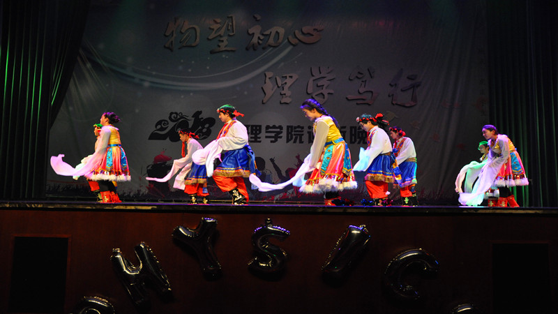 团委学生会新闻部为大家呈现的是藏族舞蹈——″情满草原″。“三步一变”、“后撤前踏”、“倒脚辗转”、“拉”、“悠”、“甩”、“绕”、“推”、“升”、“扬”十分丰富的步伐动作结合变化多端的手势,再配以华丽的藏族服饰,使整个会场都沉浸在这支藏族舞蹈中。
