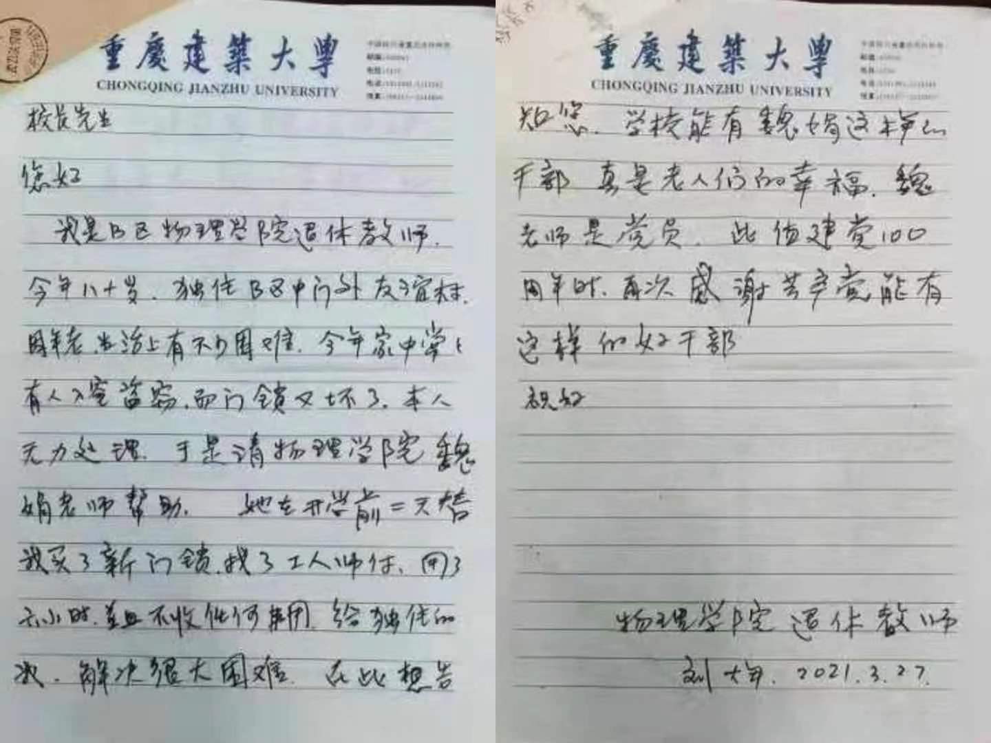 随后刘老师将自己的感激之情写了一封表扬信投给了校长信箱,她表示“学校能有魏娟这样的干部真是老人们的幸福,魏老师是党员,此值建党100周年时,再次感谢共产党能有这样的好干部”。张宗益校长手写批复“转告物理500彩票及魏老师,同时感谢魏老师对学校老教师的帮助关心”。