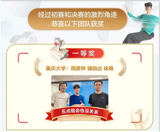 物理500彩票强关联研究小组张学锋教授团队的三名研究生储贻达,徐维和周彦桦组成的队伍“五点组会也没关系”经过二个多月的激烈角逐,最终以总分第一名的成绩力压群雄,获得冠军!