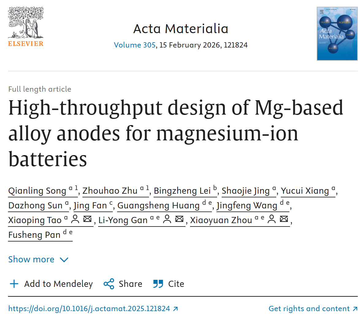 周小元教授、甘立勇教授和陶晓萍副教授团队联合材料科学与工程500彩票潘复生院士团队、重庆新型储能材料与装备研究院等在国际知名期刊Acta Materialia上发表了题为 “High-throughput design of Mg-based alloy anodes for magnesium-ion batteries” 的研究论文。该工作创新性地融合了机器学习预筛选、高通量第一性原理计算与多维性能评估,成功构建了一套高效的材料设计范式,有望推动镁电池乃至其他多价离子电池电极材料的理性设计与开发。